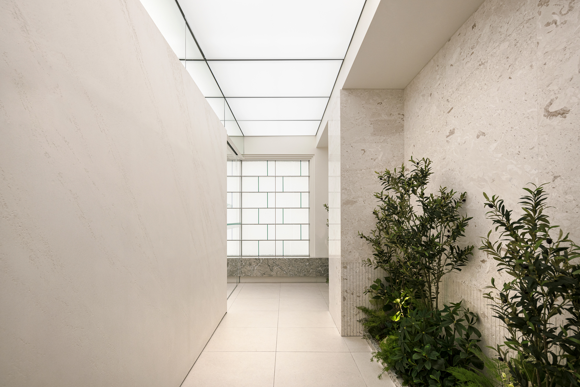 Signature glass panels at the main wall create a strong first impression and unfold into varied expressions as clients move through the space.